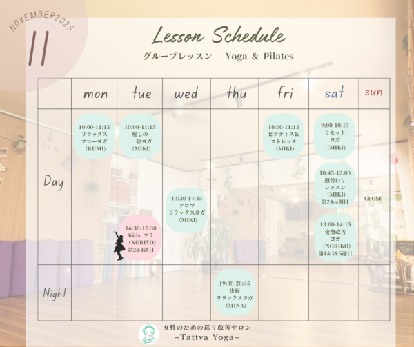 11月 ヨガグループレッスン スケジュール
